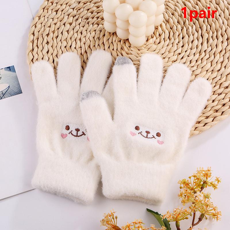 1 пара зимних перчаток с сенсорным экраном, осенние теплые эластичные плюшевые варежки, термоперчатки с полным пальцем, ветрозащитные холодостойкие велосипедные перчатки белый