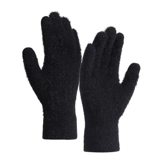 1 пара зимних перчаток унисекс, толстые плюшевые перчатки с пятью пальцами, нескользящие, для сенсорного экрана, однотонные, эластичные, сохраняющие тепло, перчатки для велоспорта и активного отдыха на открытом воздухе чёрный