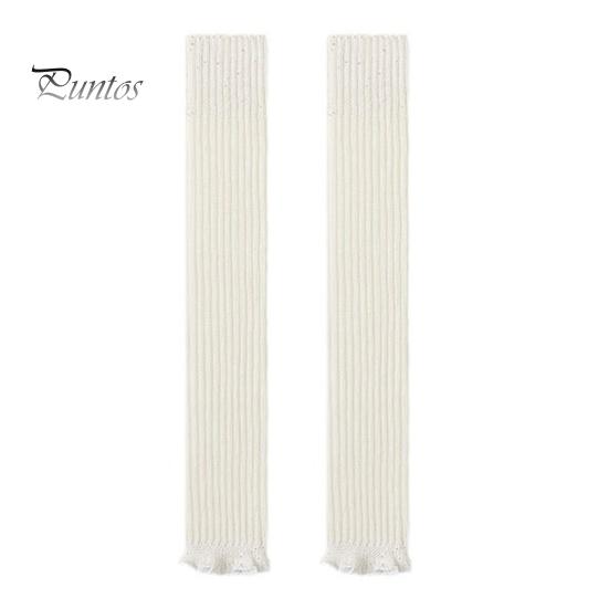 1 пара зимних чехлов для икр, трикотажные противоскользящие однотонные эластичные чехлы с искусственным жемчугом в стиле Лолиты, JK, для косплея, повседневной носки, для занятий спортом и отдыха, гетры белый