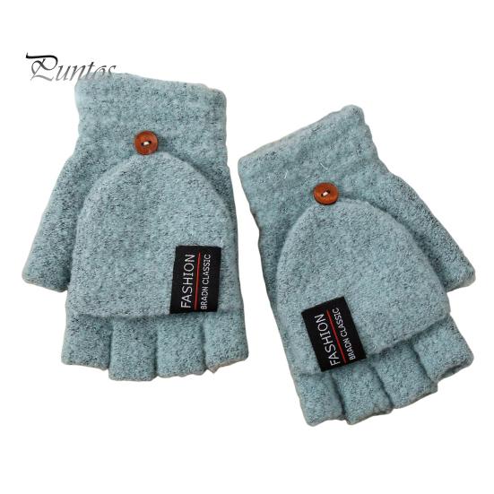1 пара мужских зимних перчаток с откидным чехлом, утолщенные трикотажные эластичные нескользящие перчатки, однотонные термоизоляционные перчатки без пальцев для езды на велосипеде армия зеленый