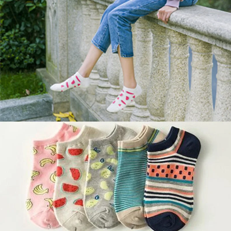 1 пара, новые весенне-летние женские дышащие милые повседневные носки-лодочки с фруктами и бананами, тапочки, женские носки до щиколотки в ст...