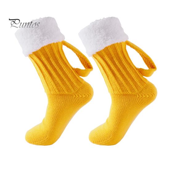 1 пара носков в форме кружки пива, толстые плюшевые вязаные зимние носки-тапочки, средней длины, сохраняющие тепло, нескользящие, карнавальные, праздничные, пивные, фестивальные носки жёлтый