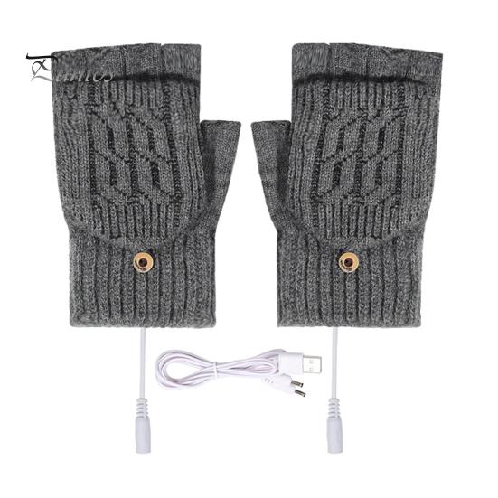 1 пара перчаток с подогревом, зарядка через USB, двусторонний подогрев, регулируемая температура, толстые трикотажные перчатки без пальцев, высокая эластичность, офисный набор текста, студенческое письмо темно-серого