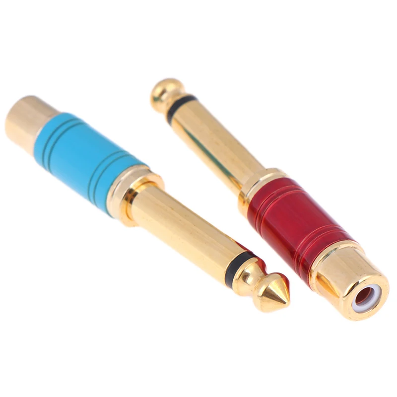 1 пара роскошных качественных никелированных аудиоразъемов RCA 6,35 мм моно разъем к RCA кабелю для колонок адаптер
