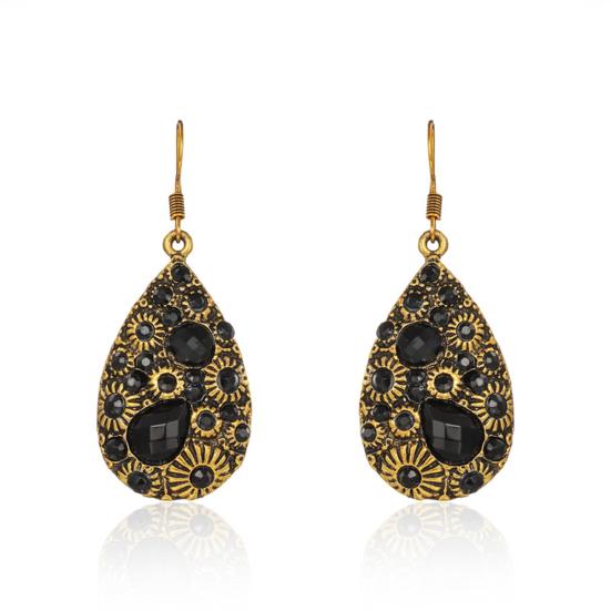 1 пара сережек-подвесок в этническом стиле с блестящими стразами, инкрустированными декоративными украшениями, подходящим по размеру, подарок, искусственный чёрный