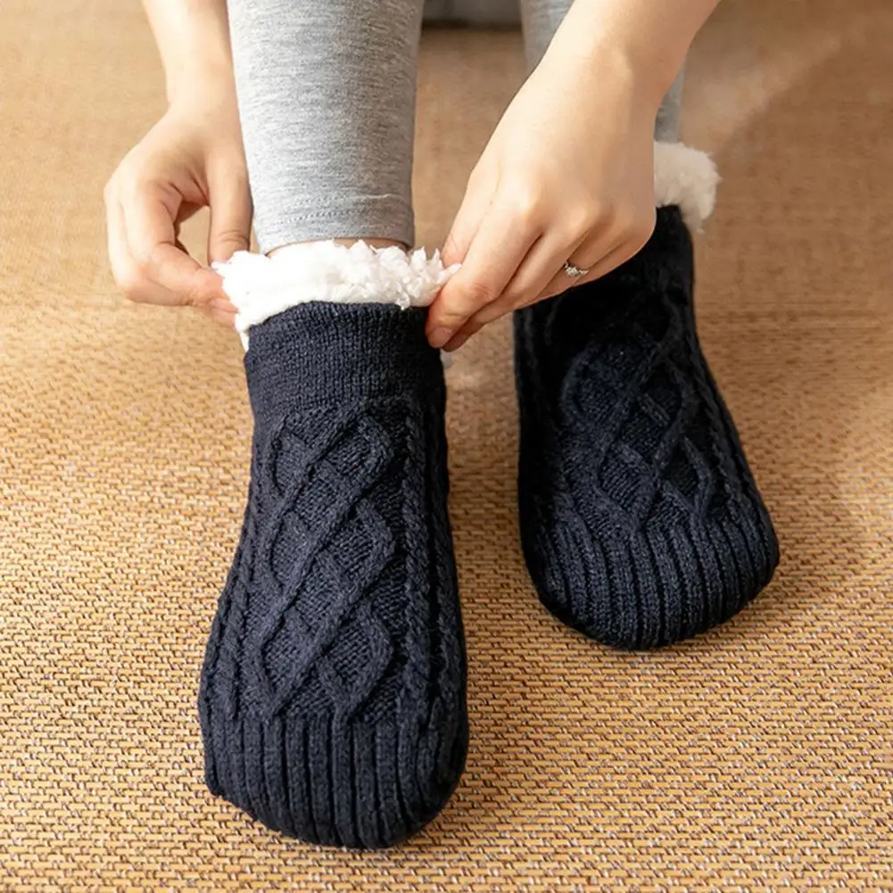1 пара, термоноски унисекс, утепленные носки с плюшевой подкладкой, Осень-зима, эластичные нескользящие носки для пола, хлопковые носки