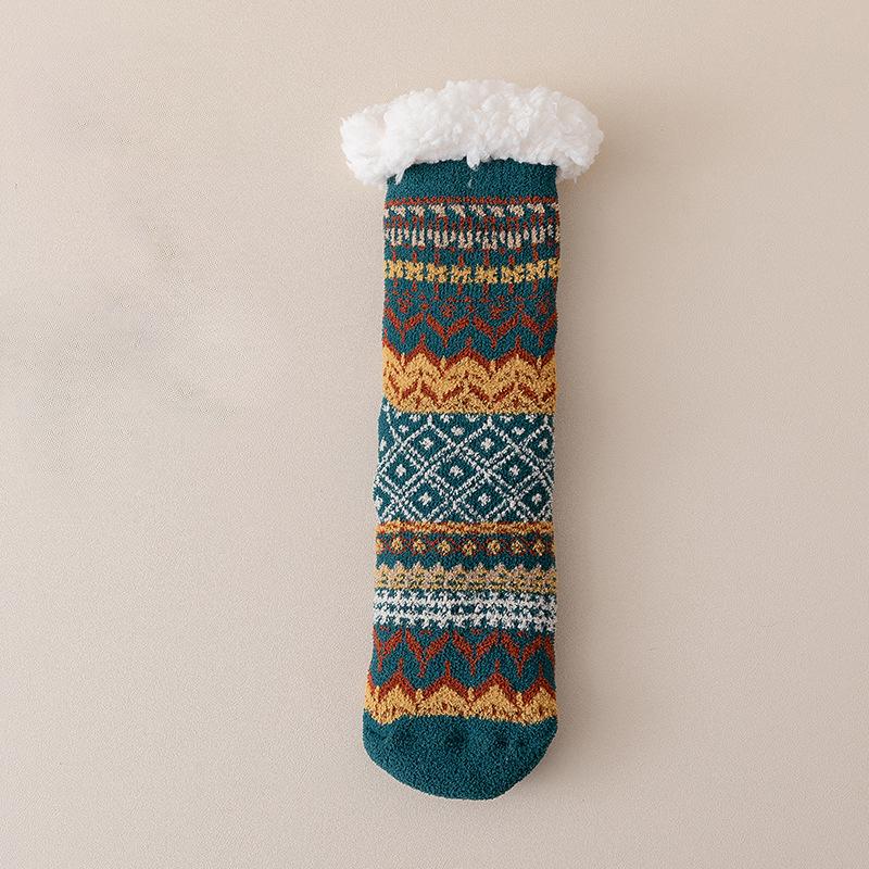 1 пара толстых носков из овечьей шерсти, зимние, устойчивые к холоду, теплые и сохраняющие тепло плюшевые носки, носки в этническом стиле для улицы, силиконовые нескользящие носки для пола