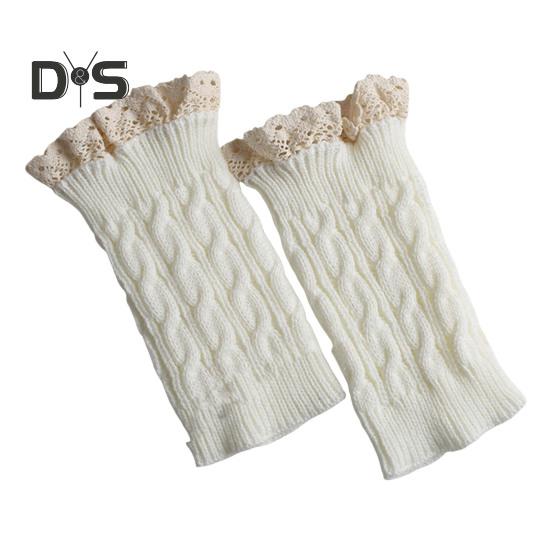 1 пара чехлов на икры для сапог, кружевная отделка, толстые вязаные теплые носки выше колена, высокоэластичные, нескользящие, безногие носки для икр белый