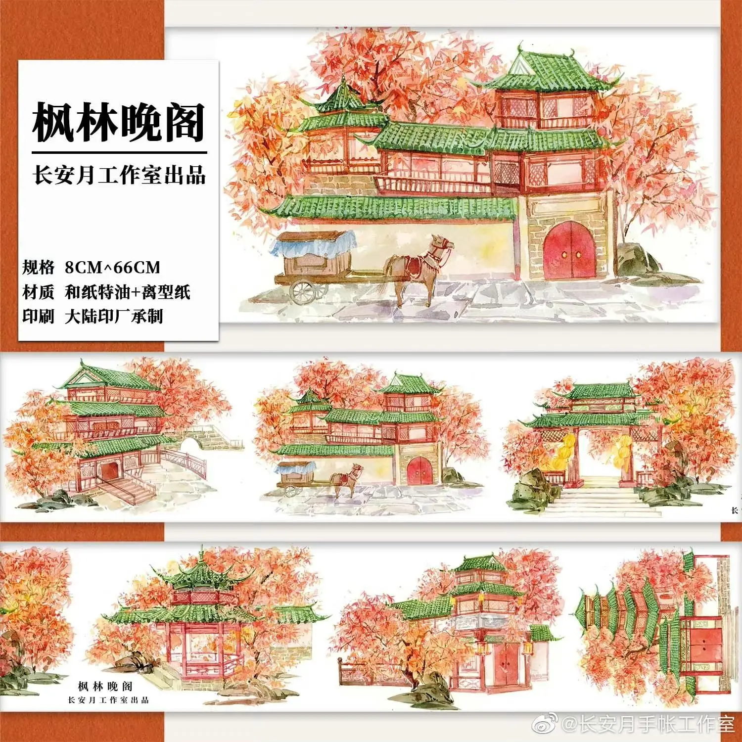 1 петля, Маскировочная лента Washi в китайском древнем стиле с кленовыми листьями