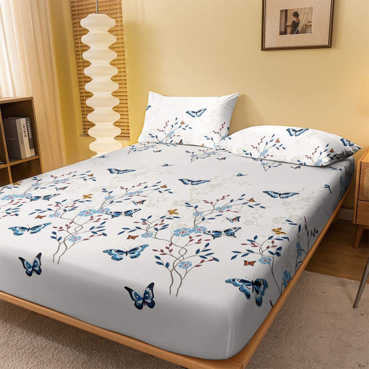 1 простая современная матовая простыня на резинке с принтом в виде растений, цветов и бабочек, покрывало для кровати с принтом в спальню, постельное белье (Исключая наволочки) 71x132cm