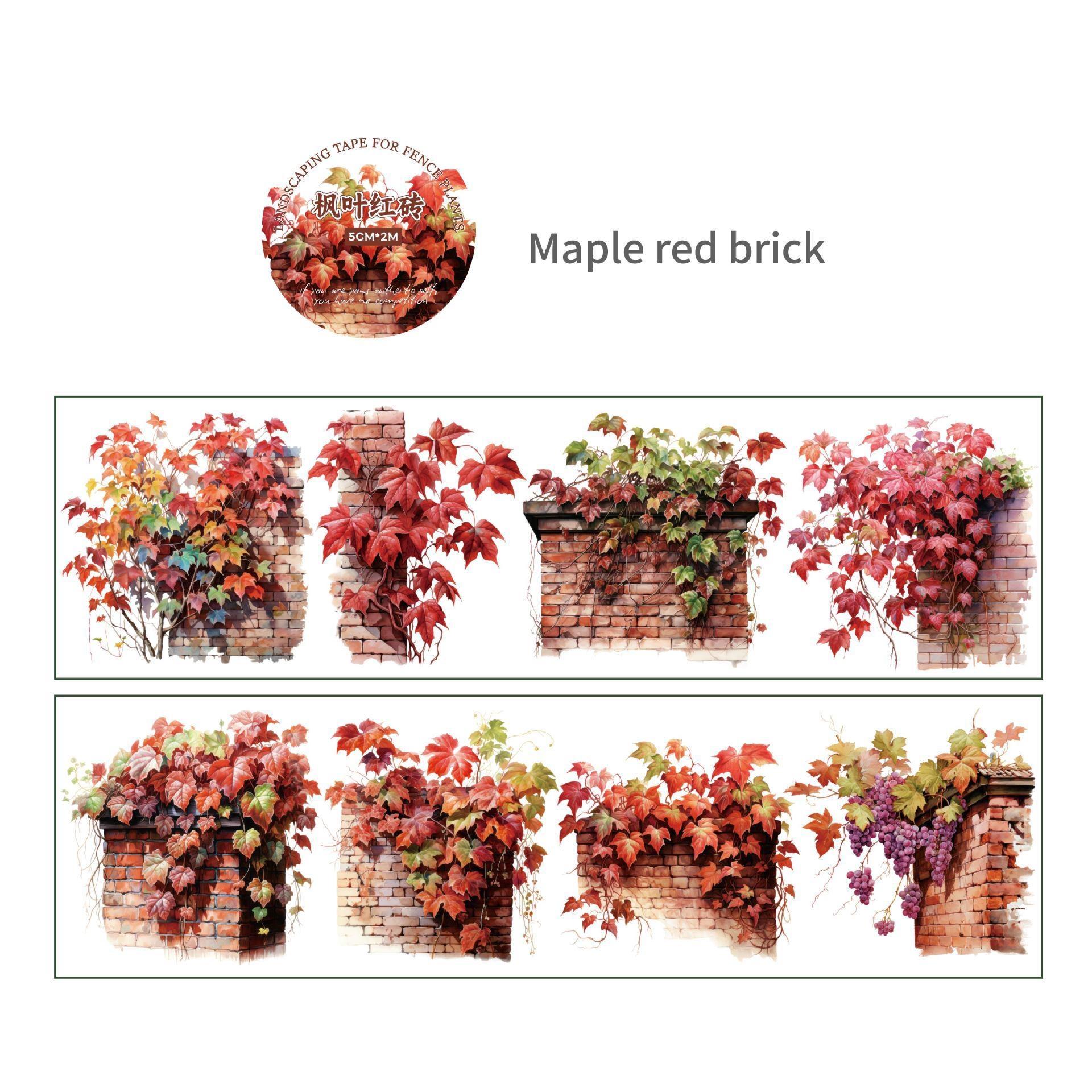 1 рулон винтажной ленты для украшения забора с растениями и цветами, 6 стилей, сделай сам, принадлежности для скрапбукинга, принадлежности для ведения журналов 3. Maple leaf red brick