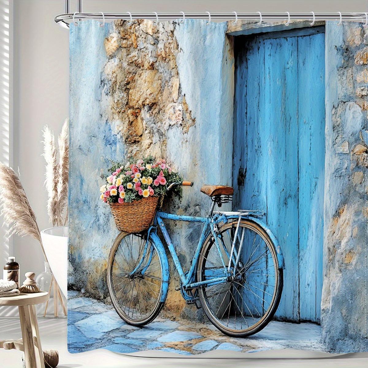 1 шт. Винтажная велосипедная и цветочная уличная сцена Занавеска для душа - Высококачественная полиэстеровая ткань, Идеальное украшение для всех сезонов 90X180cm