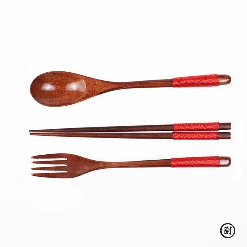1 шт. Деревянные палочки для еды, вилка, ложка, набор из трех предметов, шпагат, японская посуда, кухонный дом, палочки для еды, вилка, ложка, столовые приборы, набор