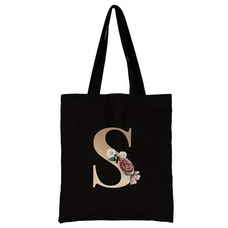 1 шт. Женская простая сумка-шоппер с цветочным и буквенным принтом, на плечо, портативная холщовая сумка для хранения, ручная сумка, сумка-тоут для путешествий на короткие расстояния на открытом воздухе S