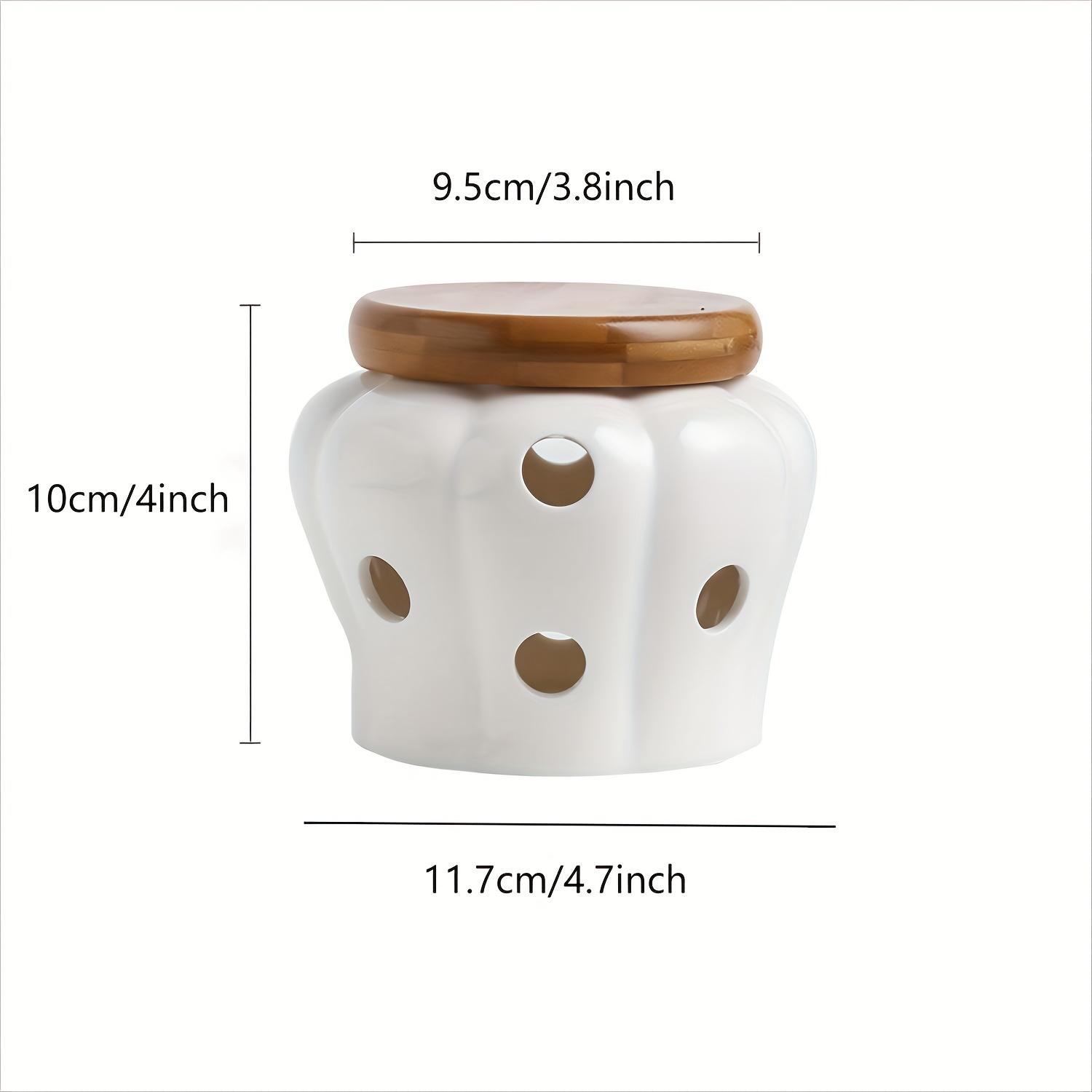 1 шт. Керамическая чесночница с бамбуковой крышкой, банка с полым дизайном, вентилируемое кухонное хранение и декор, керамическая емкость для чеснока белый