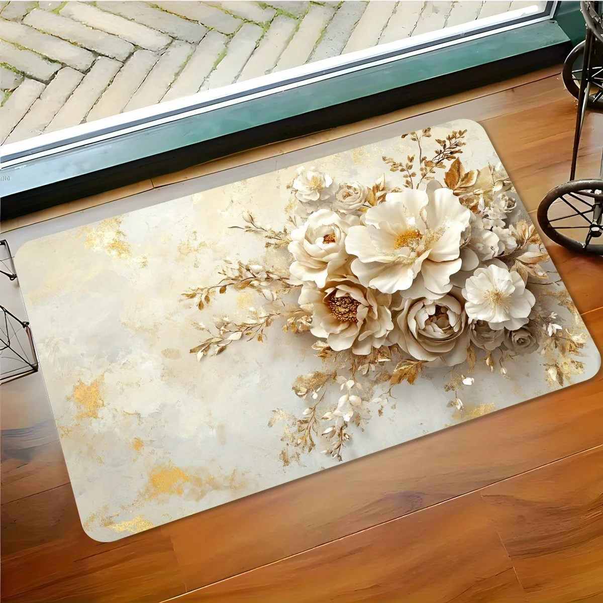 1 шт. Коврик для пола с золотым цветочным узором, полиэфирная ткань, можно стирать в машине, подходит для ванной комнаты, кухни, украшения гостиной