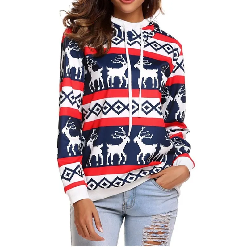 hirigin Autumn Winter 2018 Ethnic Women Hoodie Sweatshirt Jumper Hooded Pullover stiped deer printed hoodies women Tops