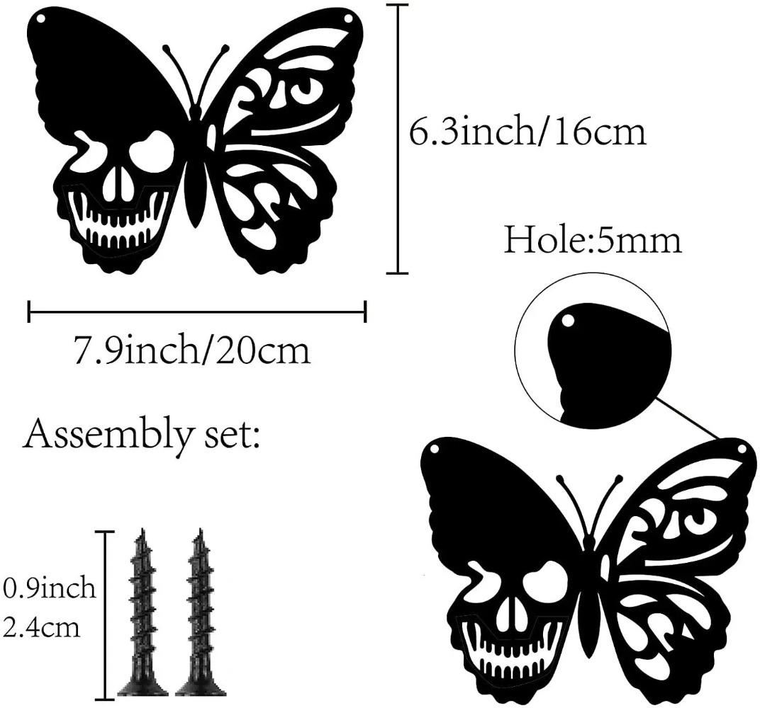 1 шт. Металлическое настенное искусство в виде черепа с декором в виде бабочки – уникальные настенные таблички, стильное и авангардное украшение для дома чёрный