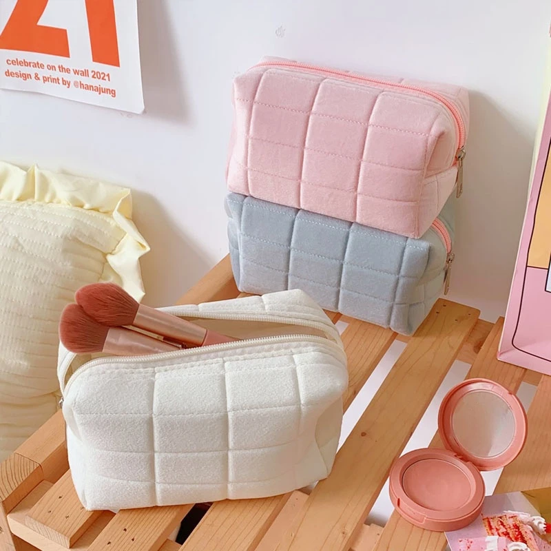 1 шт. Милая меховая косметичка для женщин, большая однотонная косметичка на молнии, дорожная косметичка, сумка для туалетных принадлежносте...