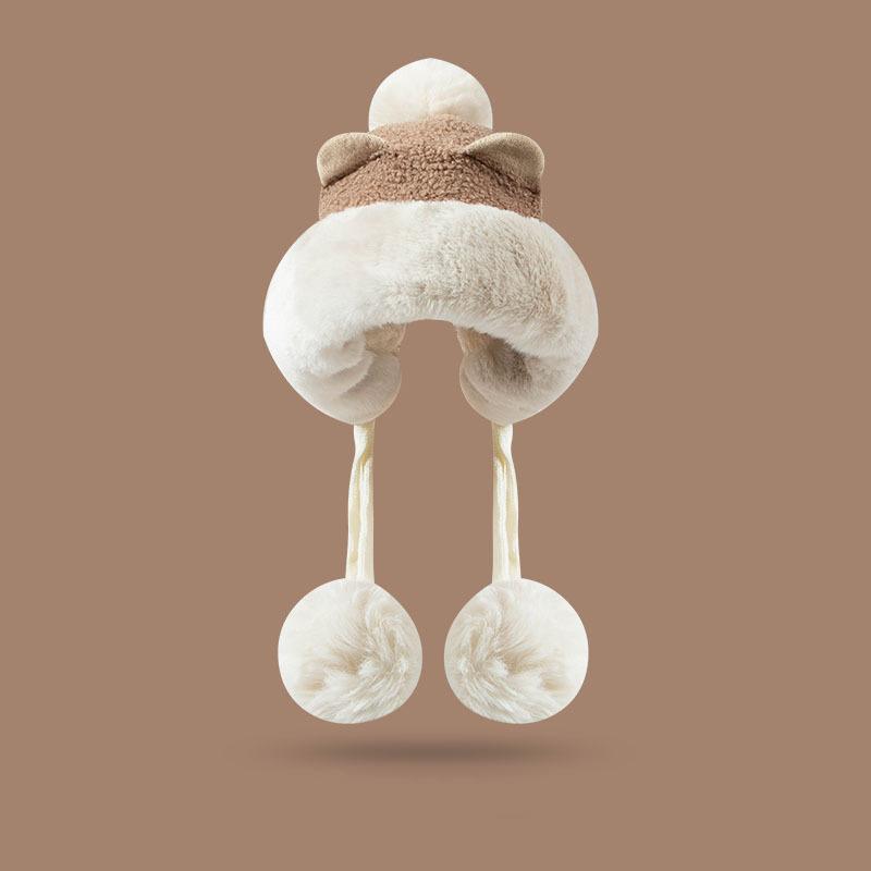 1 шт. Милая шапка с ушками медведя 2023 г., новая женская зимняя шапка со шнуровкой, симпатичная кепка-ведро, бархатная защита ушей, модная шерстяная шляпа-ведро одного размера