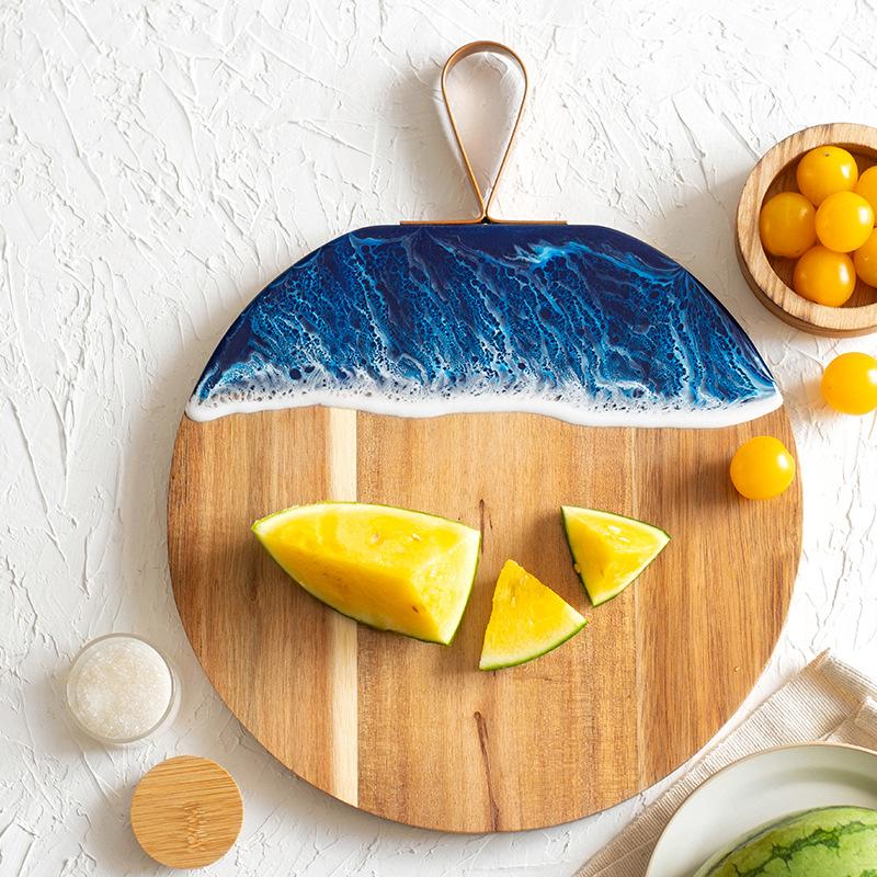 1 шт. Морская волна смоляная разделочная доска сращивание акации дерево бытовая разделочная доска для фруктов креативная деревянная тарелка для стейка small