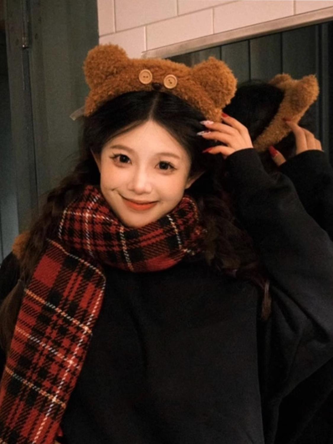 1 шт. НОВЫЙ Обруч для волос «Маленький медвежонок» Плюшевый Желтый Милый Повязка для умывания лица Мультяшный Головной убор