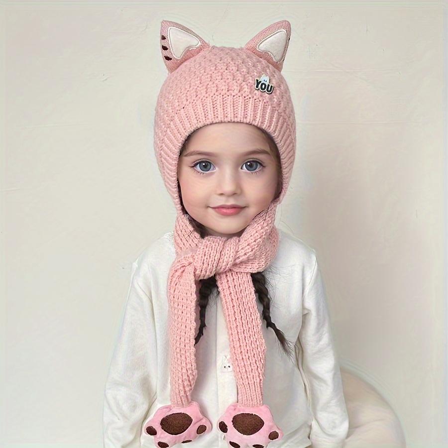 1 шт. Очаровательная теплая шапка с кошачьими ушками для детей - Уютный вязаный капюшон-кейп, эластичная посадка, для осенне-зимних уличных мероприятий для 8-12 лет, шапка с кошачьими ушками
