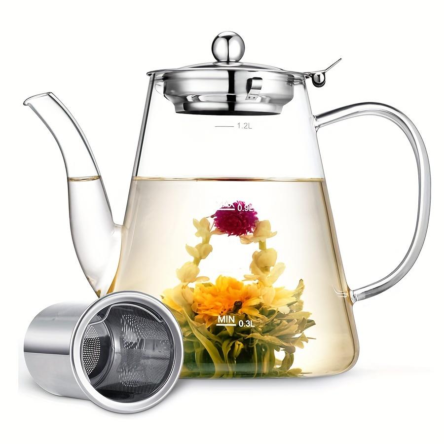 1 шт. Стеклянный чайник 40,58 унций Чайник со съемным заварочным устройством для заваривания чая Утолщенный стеклянный чайник для кунг-фу, термостойкий чайник для цветущего чая 40.58oz Detachable Steel Leaky Teapot