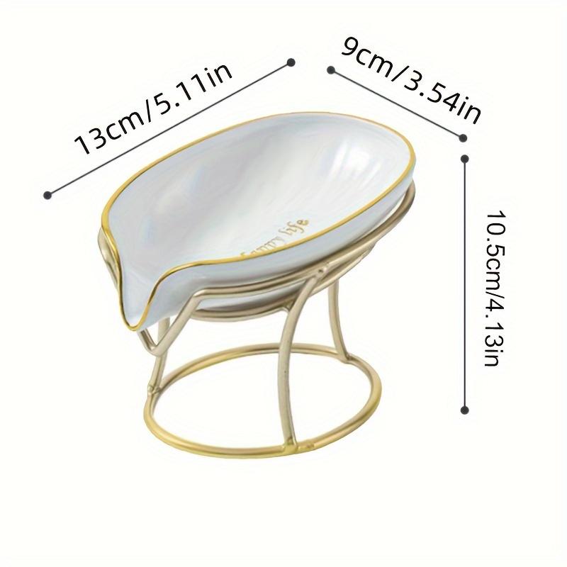 1 шт. Элегантная мыльница золотистого тона с дренажем - Без сверления, прочный пластиковый держатель в стильном зелено-прозрачном дизайне для ванной и кухни белый