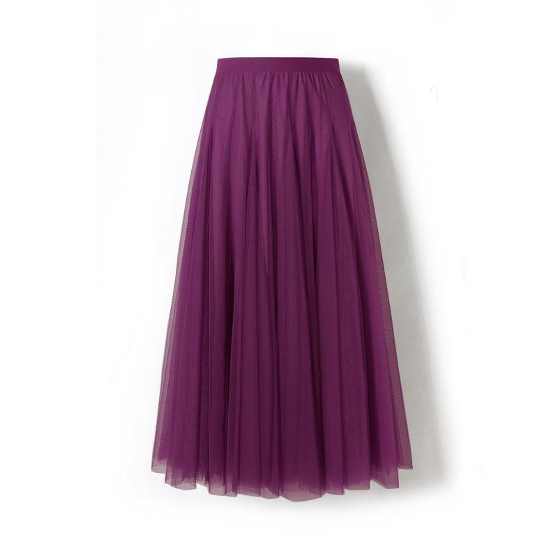 1 шт. Юбка разных цветов с подкладкой, однотонная сетка, тюль, летняя юбка-трапеция, женская, весна, высокая талия 85cm фиолетовый