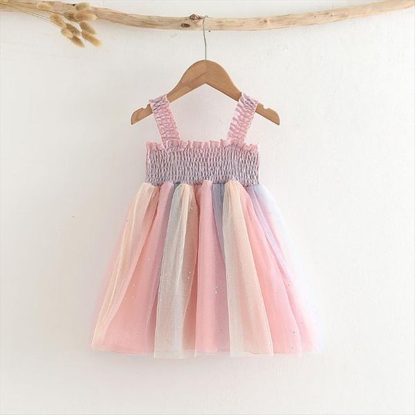 girls party costume summer girl dresses baby colorful princess children sweet clothing kids elegant suit 3 7y, Red;yellow