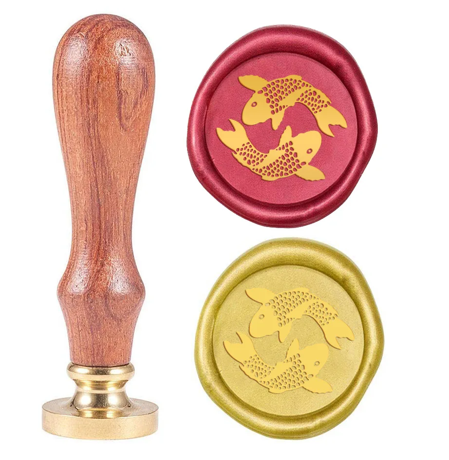 1 шт., винтажный Печатный штамп с рисунком рыбы кои, съемная латунная головка в стиле ретро, размер 25 мм, цифровой штамп для поздравления