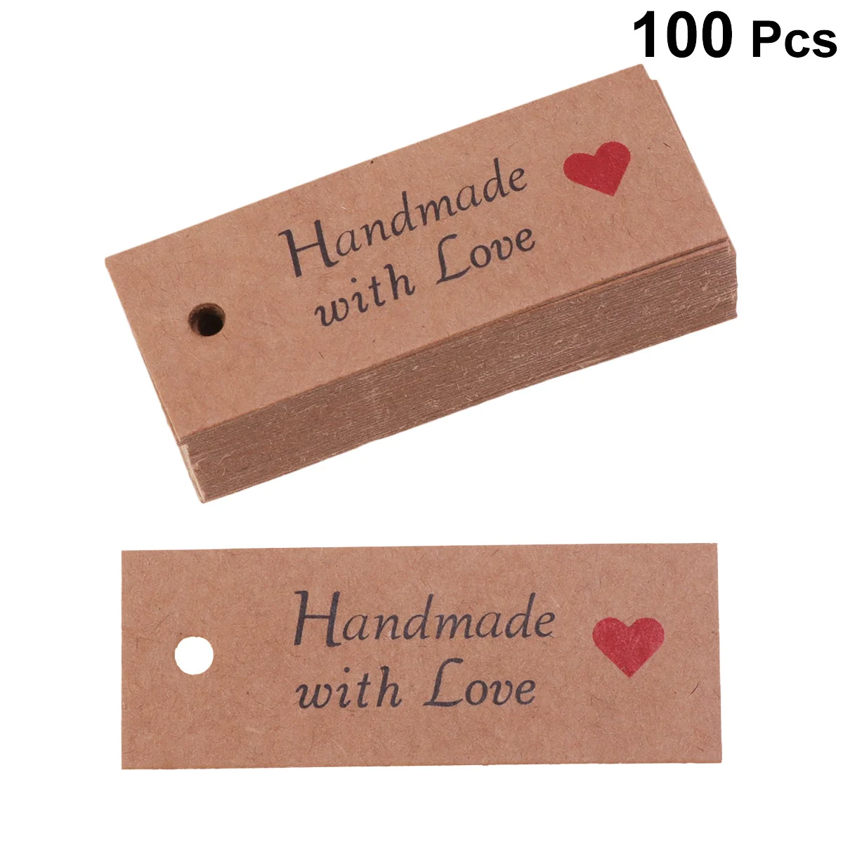 100Pcs Kraft Love Heart Gift Tags Hanging Labels for Baking Gift Wrapping Durable Reusable Present Tags DIY Cards