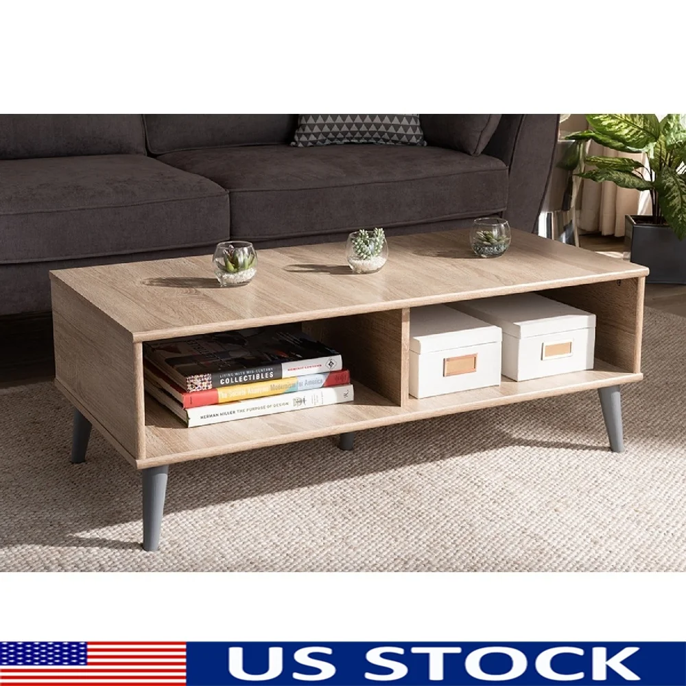 Современный дубовый светло-серый журнальный столик середины века, два открытых полки, конические ножки, минималистичный дизайн, сборка мебели для дома