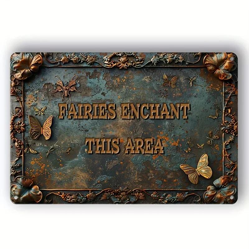 1 шт. деревенская металлическая алюминиевая табличка «Феи зачаровали эту местность», настенное искусство в винтажном стиле, водонепроницаемая и пыленепроницаемая, идеально подходит для дома чёрный
