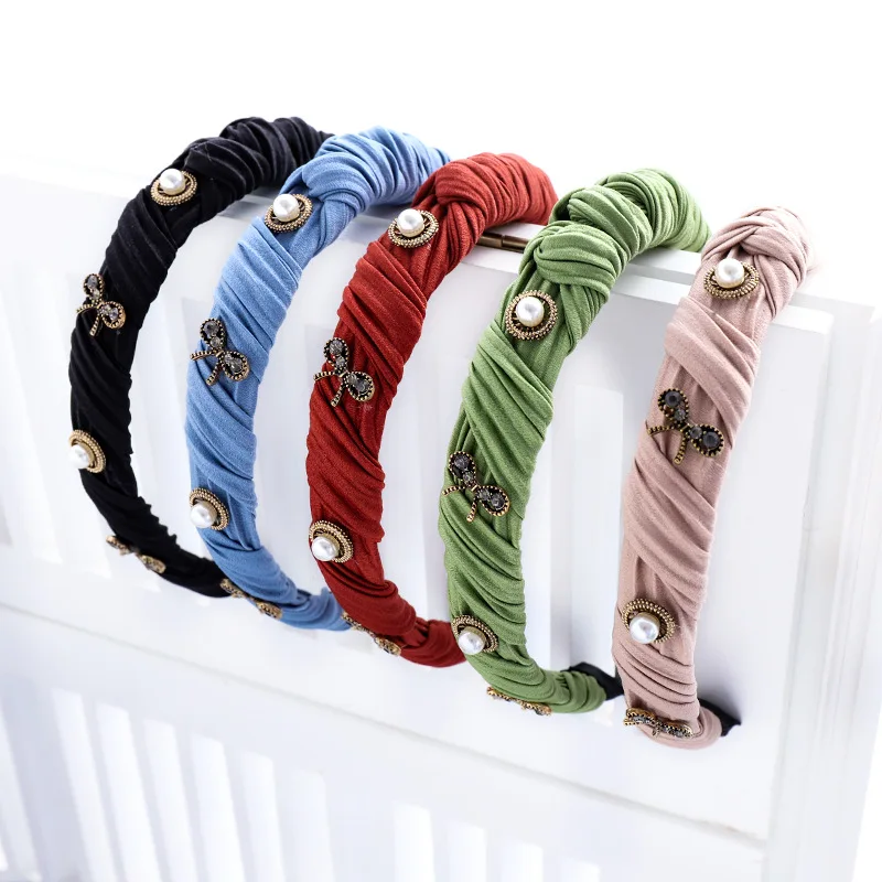 1 шт., жемчужные женские повязки на голову, модные стразы, повязки для волос для женщин и девочек, винтажная ткань, мягкие повседневные аксесс...
