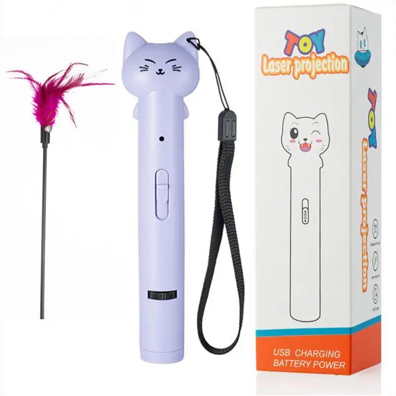 1 шт. забавная ручка для домашних животных, кошек, лазерная многофункциональная USB-проекция с несколькими узорами, три в одном, лазерная игрушка, палочка для перьев, игрушки для животных фиолетовый