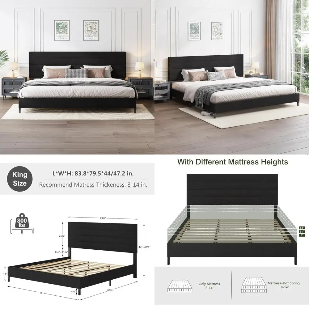Современный бархатный каркас двуспальной кровати с регулируемым изголовьем, кровать-платформа с деревянными пламелями, коробчатая пружина не требуется