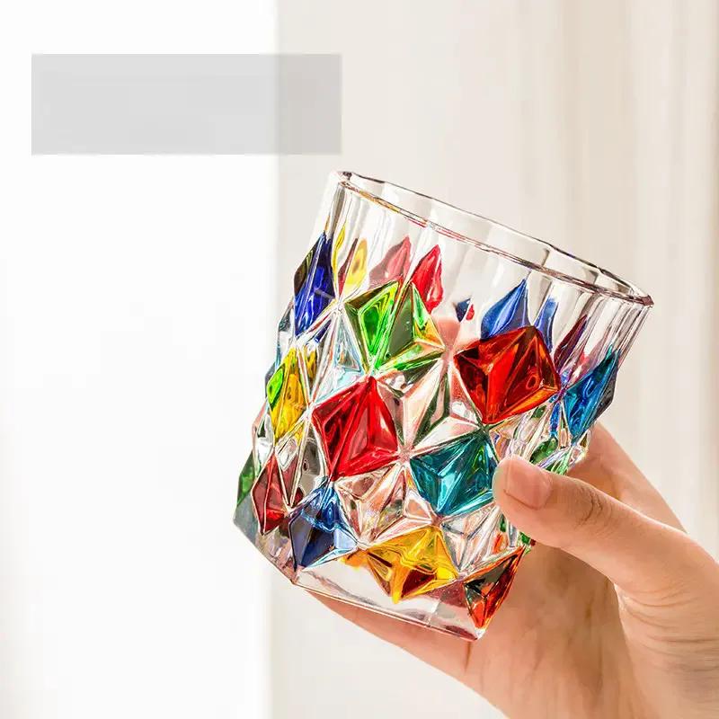 1 шт., итальянское витражное стекло с тиснением, цветная чашка для питья, кофейная кружка, сверкающее блестящее стекло для виски для различных напитков и вина 300ml красный