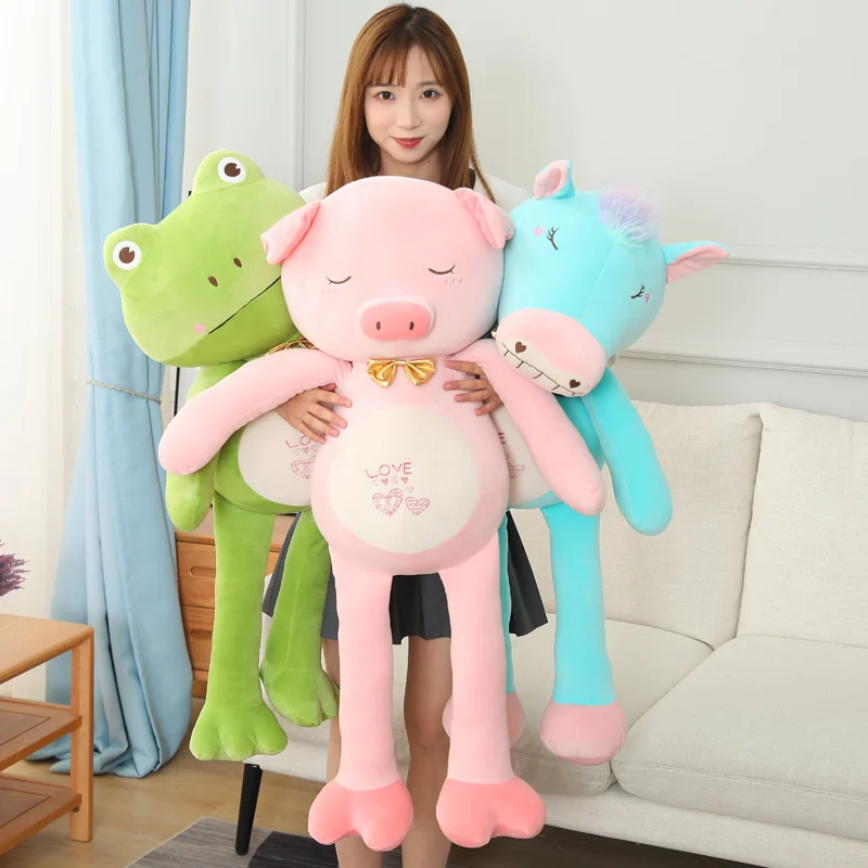 1 шт. кавайная розовая свинка зеленая лягушка розовый кролик и лошадь плюшевое животное Мягкое Животное Кролик Кукла Мягкая для детей Подарки для девочек 55/90 см
