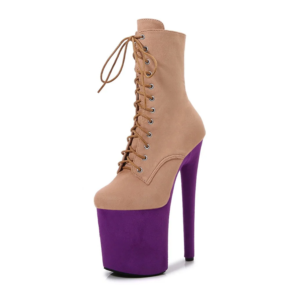 CA 18CM High Heels Women Platform Short Boots,Unisex Pole Dance Shoes,Men Cosplay Ankle Botas,Mixed Colors,Purple,Brwon,Dropship