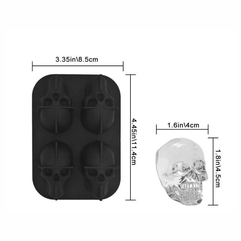 1 шт. лоток для кубиков льда, 3D-череп, форма для льда-легкосъемная силиконовая форма, 4 милых и забавных ледяных черепа для виски, коктейлей и соков, напитков, черная форма для льда 1PCS