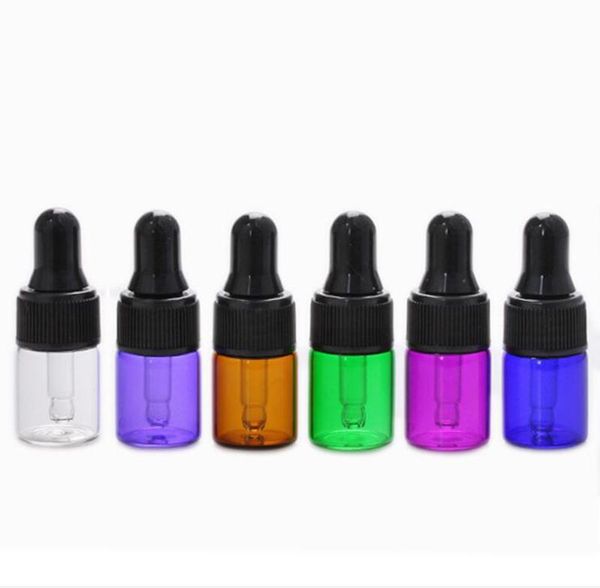 wholesale 2ml clear amber blue green mini glass dropper bottles small glass vials with black lid for cosmetic perfume ask