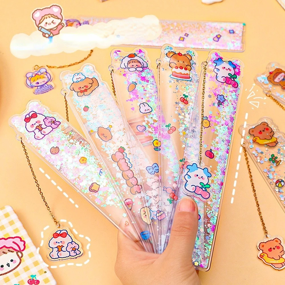 1 шт. мультяшная масляная Закладка с зыбучим песком прочная линейка INS Девочка Сердце обучающий кулон многофункциональная линейка для рисов...