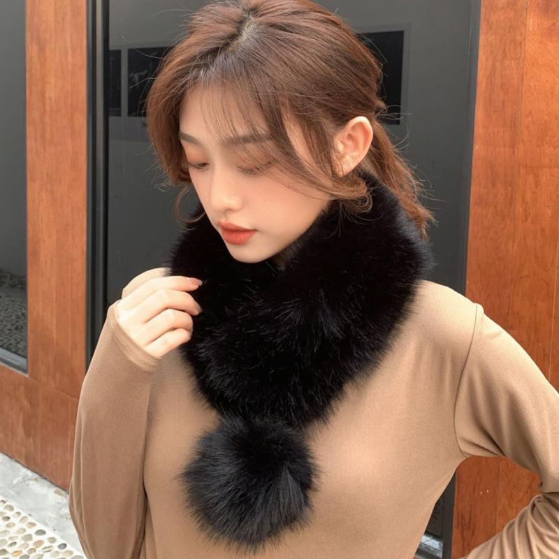 1 шт., мягкий теплый шарф для шеи, пушистый плюшевый шар, уличный шарф с имитацией лисьего меха, модный удобный шарф серый