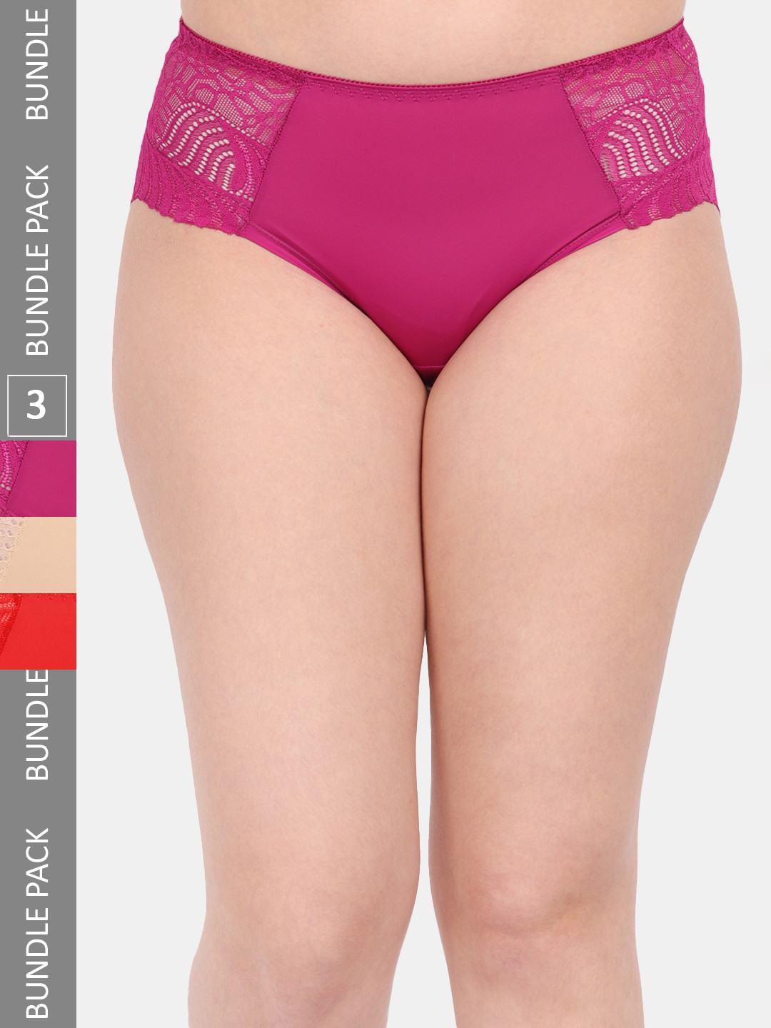 Amour Secret Women Pack Of 3 Anti-Microbial Hipster Briefs P3327_Mgt_Nud_Red, Magenta