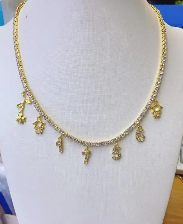1 шт. номер золотого цвета камень Медь cz цирконий кубический цирконий ожерелье Браслеты df3a