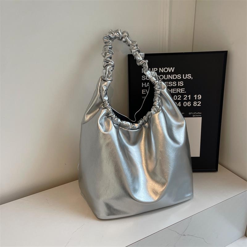 1 шт. однотонная женская сумка через плечо, модная плиссированная портативная сумка-ведро большой емкости для работы и поездок на работу
