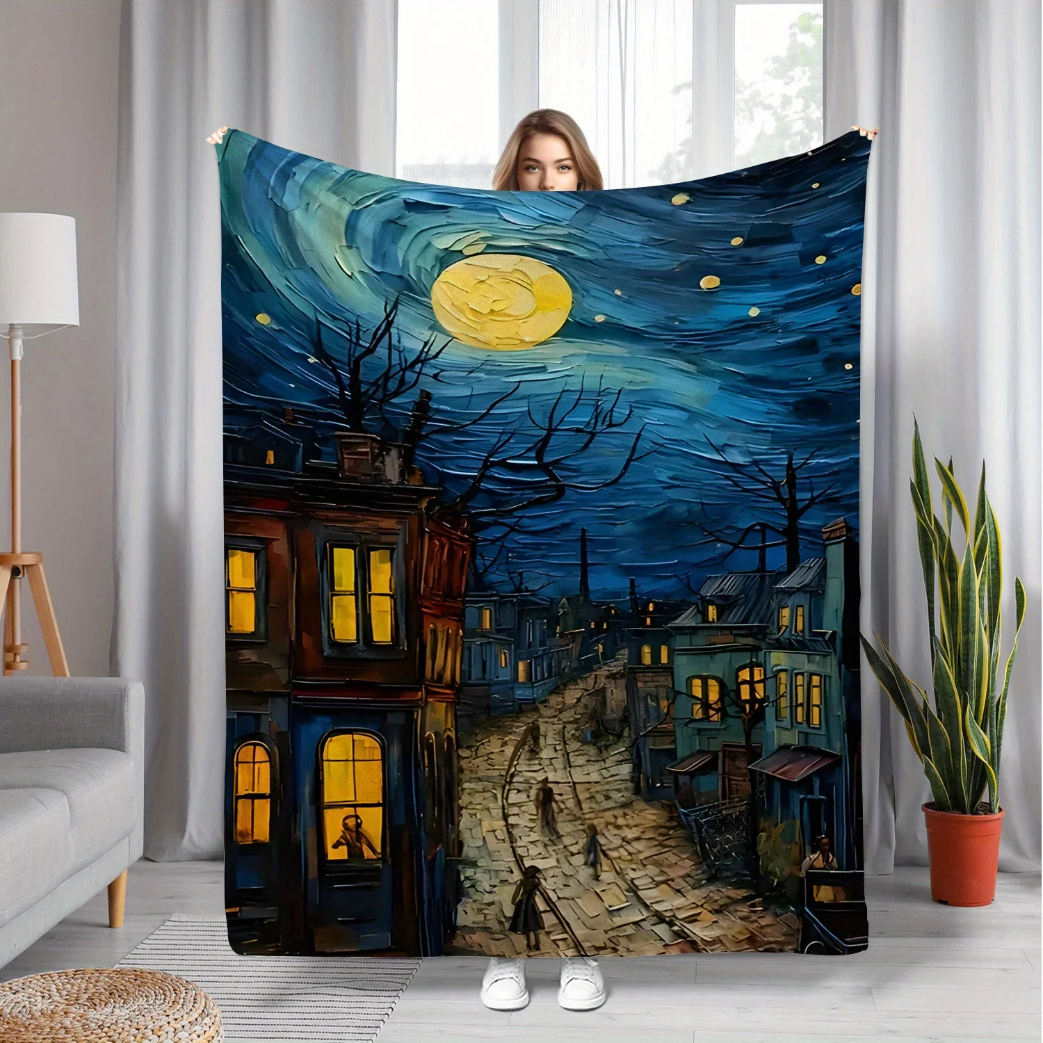 1 шт., очаровательное одеяло с уличным принтом в ночном городе, полиэфирная ткань, можно стирать в машине, подходит для украшения спальни и гостиной