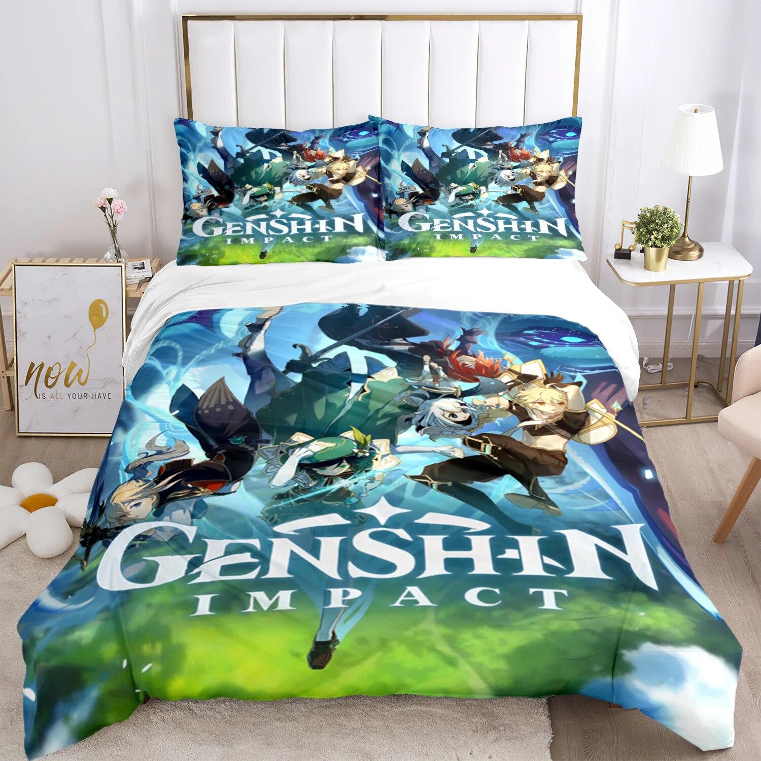 Genshin Impact Print Комплект постельного белья из трех предметов Модные изделия для детей и взрослых для кроватей Пододеяльники Наволочки Комплект постельного белья EU Twin 135x200cm